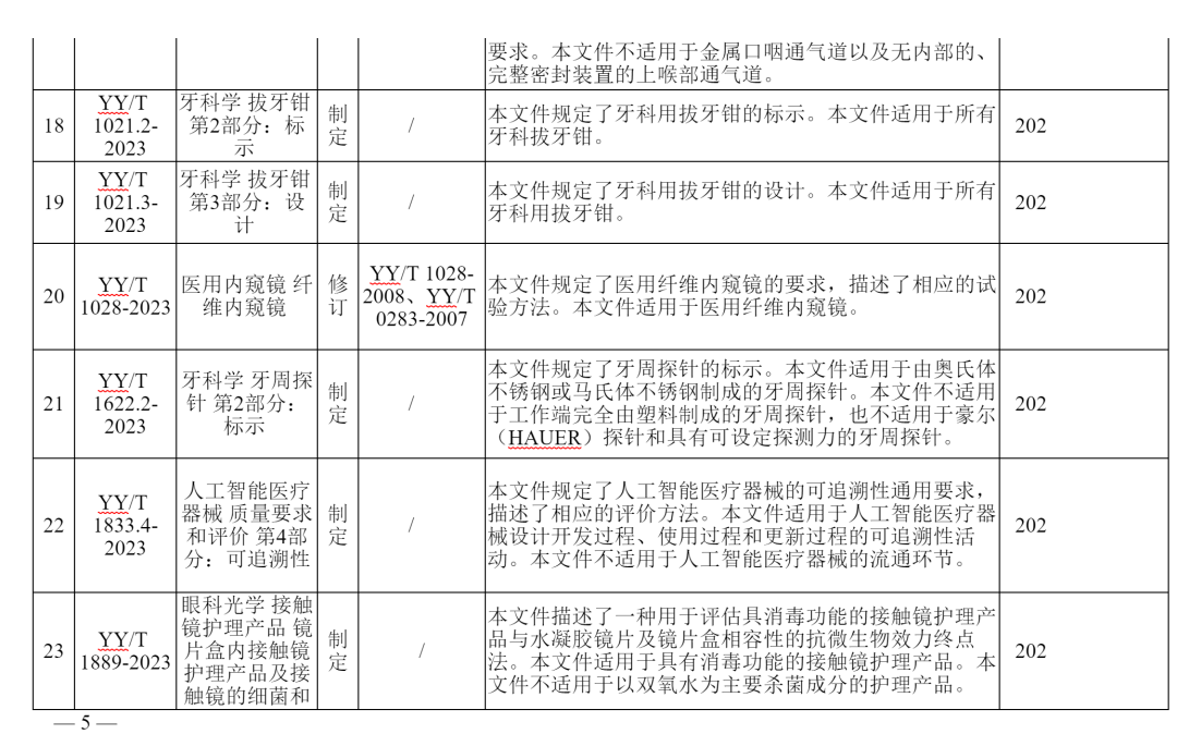 YY 0304-2023《等离子喷涂羟基磷灰石涂层钛基牙种植体》等45项医疗器械行业标准已经审定通过,现予以公布(2023年第118号)。标准编号、名称、适用范围和实施日期见附件。