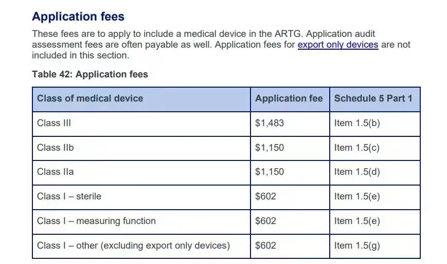 2024年7月1日起,澳大利亚TGA对医疗器械的申请费和年费进行了更新,更新后的费用详细情况公示如下: